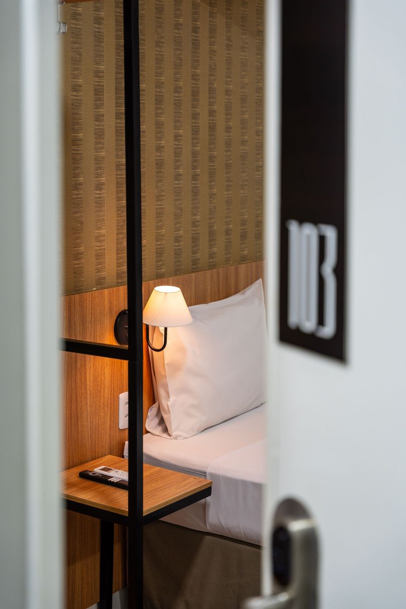 Confortáveis e aconchegantes, oferecidos por um baixo custo, os 84 apartamentos do hotel têm decoração contemporânea, uma homenagem à grande metrópole paulista.